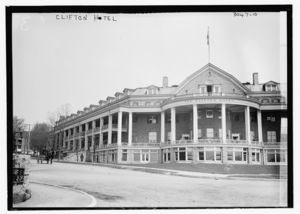 Old Point Comfort, view of Chamberlin Hotel from wharf