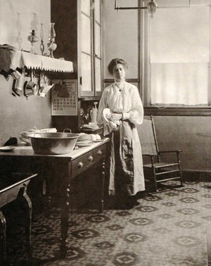 This photo, taken between 1903-1910, shows Mrs. Arthur Beales working in her kitchen.