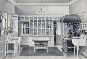 This illustration shows what a modern kitchen looked like in rare upper-class homes around 1911