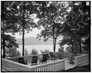 East terrace and the lake, Hotel Champlain, Bluff Point, N.Y.