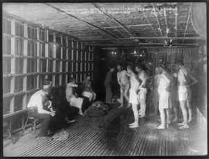 Male lodgers bathing at the Municipal Lodging House, N.Y.