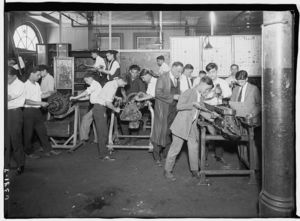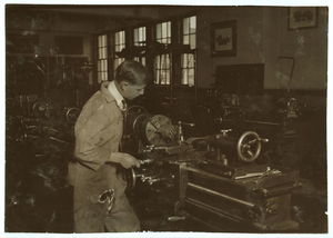 High School boy at work in machine shop. Oklahoma City High School. Location: Oklahoma City, Oklahoma / Lewis W. Hine.