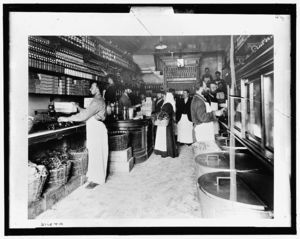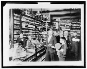Washington, D.C. Two boys waiting to help customers with their orders at the grocery store