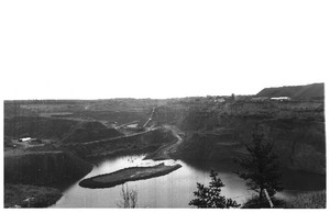 Bingham Canyon, Utah. Overall view of an open-pit mine of the Utah Copper Company showing railroads, buildings, trestle bridge, and mountains of ore