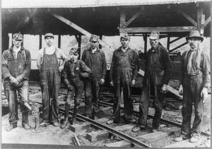 Bank Boss (on right) Brake Boy (in centre) Laura Mine, Red Star, W. Va. Location: Red Star, West Virginia.