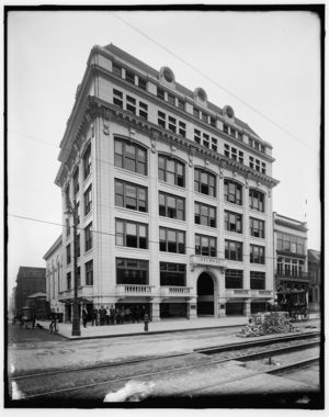 Journal Building and street railroad construction, possibly Detroit, Michigan