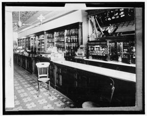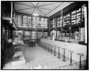Drug store with soda fountain, possibly in Detroit, Michigan