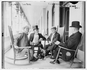 M.J. Dady, Lou Payne, T.L. Woodruff, and G.W. Aldridge, seated together on porch