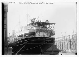 Deck of "Pennsylvania" showing the Curtiss biplane