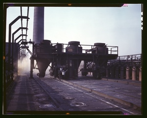 Blast furnaces and iron ore at the Carnegie-Illinois Steel Corporation mills, Etna, Pennsylvania