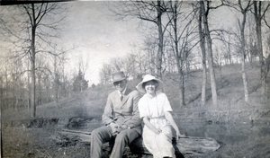 Ophelia and Ira D. Moffett at the old homestead, likely around 1914 or 1915.