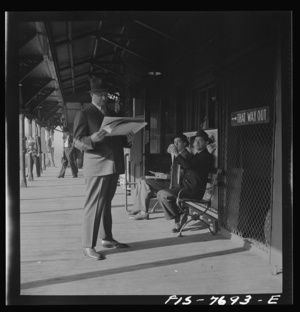 New York, New York. Waiting for the Third Avenue elevated train in the "Fifties" at 8:30 a.m.