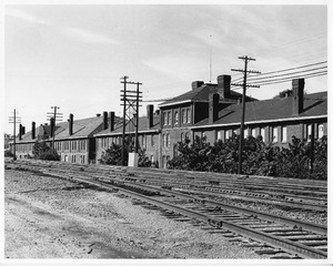 Railroad yards, Kearney, Nebraska. Overland train passengers go back to their cars after ten minute train stop on trip between San Francisco and Chicago