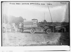 Am'n i.e. American Ambulance on road to Verdun, shell bursting