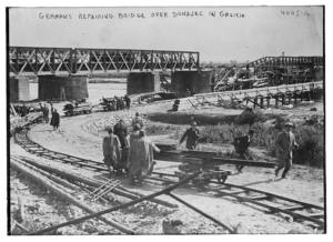Germans repairing bridge over Dunajec in Galicia i.e. Galitzia