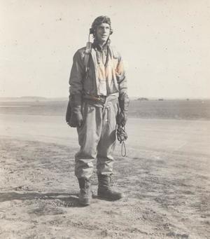 361st Fighter Group Commander Col. Thomas J J Christian Jr. in full flight gear at Bottisham, Cam...