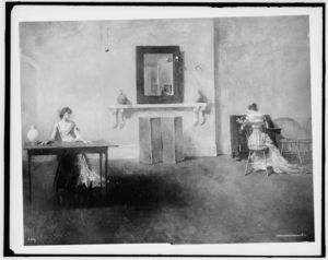 New York, New York. Newsroom of the New York Times newspaper. Reporters and rewrite men writing stories, and waiting to be sent out. Rewrite man in background gets the story on the phone from reporter outside
